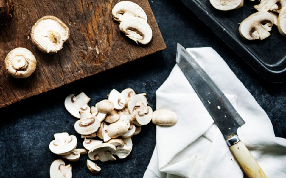 shiitake cortado em tiras finas